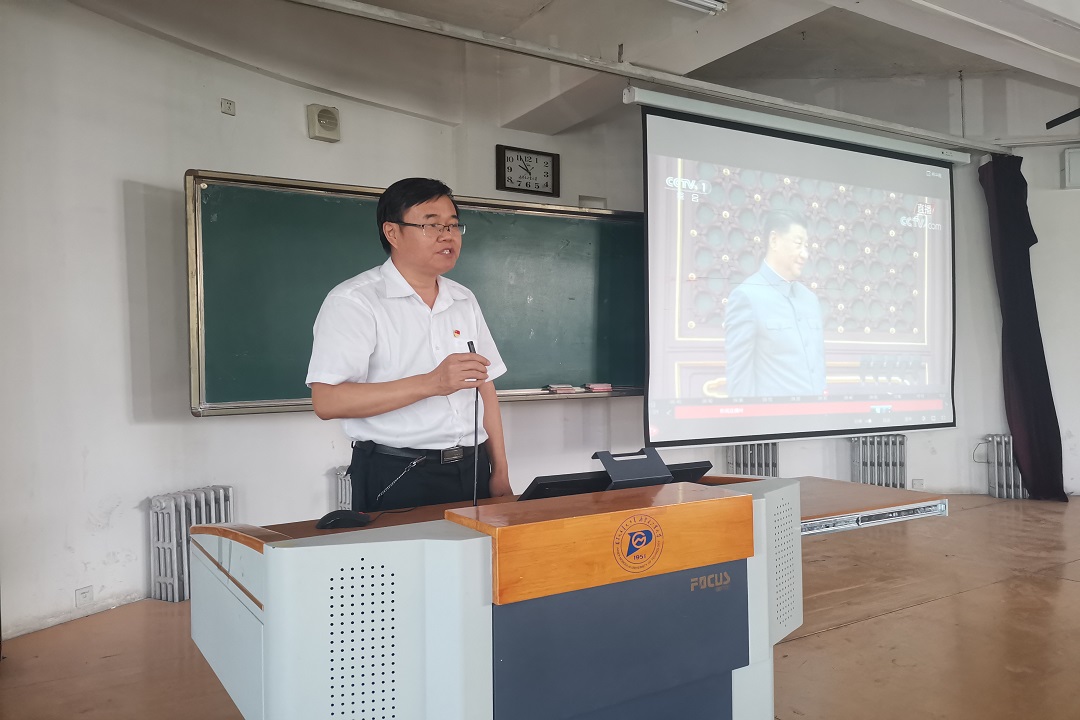 7月1日上午8时,公司党委组织全院教师,全体员工党员,部分发展对象和入党积极分子在新城校区第二教学楼205教室集中收看习近平总书记在庆祝中国共产党成立100周年大会上重要讲话现场直播,公司其他同学以班级为单位集中收看。
