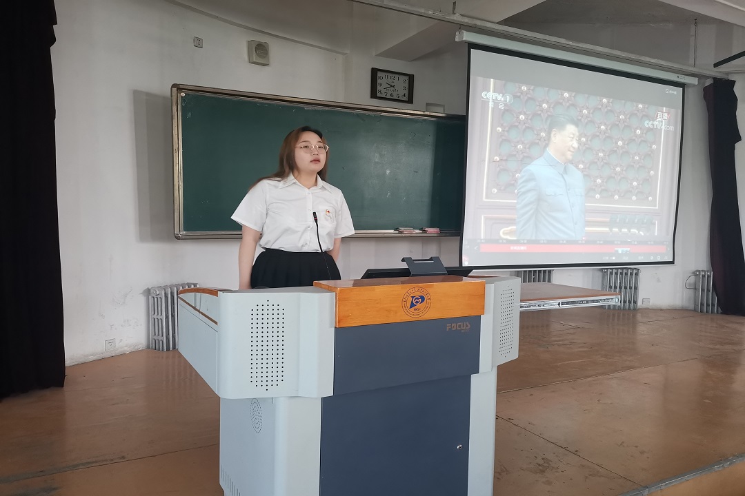 参会人员统一着装,党员佩戴党员徽章,跟随主会场一起起立奏唱国歌。习近平总书记的讲话激荡人心,师生们的情绪高涨,掌声一次次在会场响起,在习近平总书记庄严宣告“我们实现了第一个百年奋斗目标,在中华大地上全面建成了小康社会,历史性地解决了绝对贫困问题,正在意气风发向着全面建成社会主义现代化强国的第二个百年奋斗目标迈进”时;“中国人民也绝不允许任何外来势力欺负、压迫、奴役我们”;“任何人都不要低估中国人民捍卫国家主权和领土完整的坚强决心等讲话”时,与会师生数次热泪盈眶,掌声雷动。