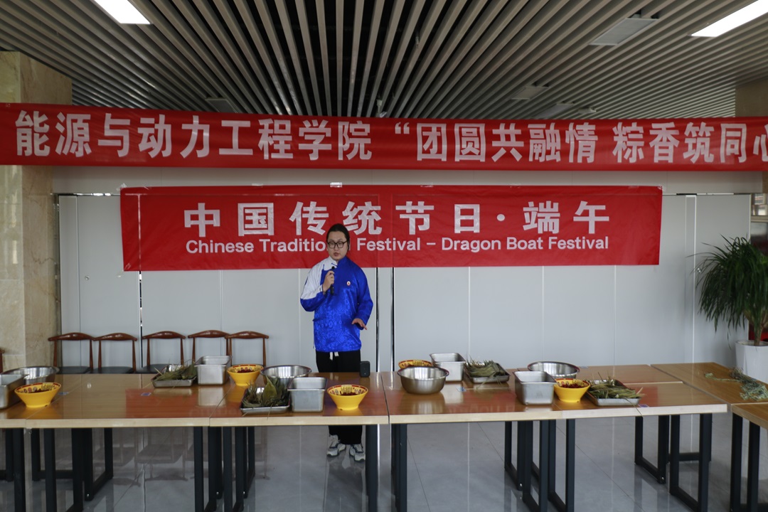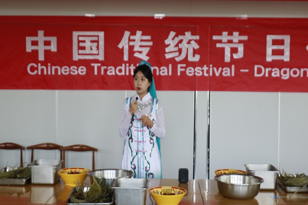 活动现场,同学们向培训班的国外专家学员介绍了端午节悠久的历史和丰富的文化内涵。回族、布依族、土家族、蒙古族、彝族、锡伯族、汉族同学身着民族服饰,讲解民族特色活动、美食。