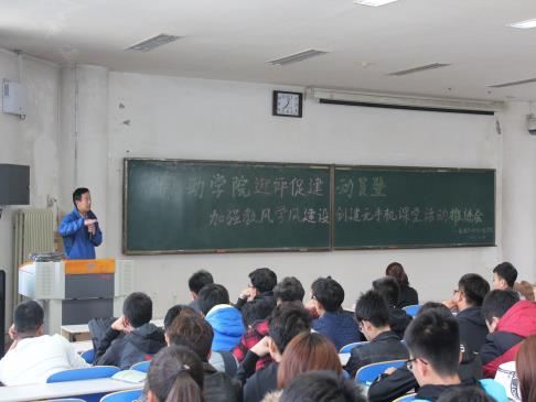 同时,李元涛要求各班级抓好本科教学工作审核评估宣传学习手册(员工版)的学习,通过召开主题班会做好宣传学习和员工动员,积极营造“人人关心评估、人人了解评估、人人参与评估、人人支持评估”的浓厚氛围。做到评估评建“应知应会”要铭记,校史校情“图解图说”要掌握,评建工作“你问我答”要知情。将迎评促建表现在同学们的具体实际行动当中,表现在日常行为当中,表现在努力学习和刻苦专研知识当中,做努力学习的榜样,文明行为的标兵,遵守校纪校规的模范。