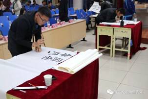 在主持人热情的开场词后,大家首先欣赏了优美的音乐和精彩的书画展。随后比赛正式开始,每一位新生都聚精会神,严肃而又不露怯意,醉心于自己的书法世界中。在优美的音乐旋律中,选手们执笔凝神,认真构思,落笔回寰之间,或俊雅或娟秀的笔风显现。在参赛者专注于自己的创作时,工作人员也在一旁严阵以待,以便在参赛者有需要时第一时间做出反应。各评委老师穿梭其间,观察着参赛者和其尚在创作的作品。其中,有整齐划一的楷书,有连绵不断的草书,有优美复杂的小篆,有行云流水的行书,为在场的同学们献上了一场艺术的饕餮盛宴。赛程过半,选手们仍专注比赛,展现出他们对书法的热爱和对比赛的严谨态度。最后,在评委和嘉宾的评选下,几幅作品脱颖而出,并由评委老师们为他们颁发奖励,并与获奖作品的作者深入交流,了解选手们的作品风格和练习情况,并对每位选手的作品做了认真、公平、公正的点评,指出了其中的优点与不足,还就各位选手未来练习的方向做出详细指导,使在场同学都受益匪浅。