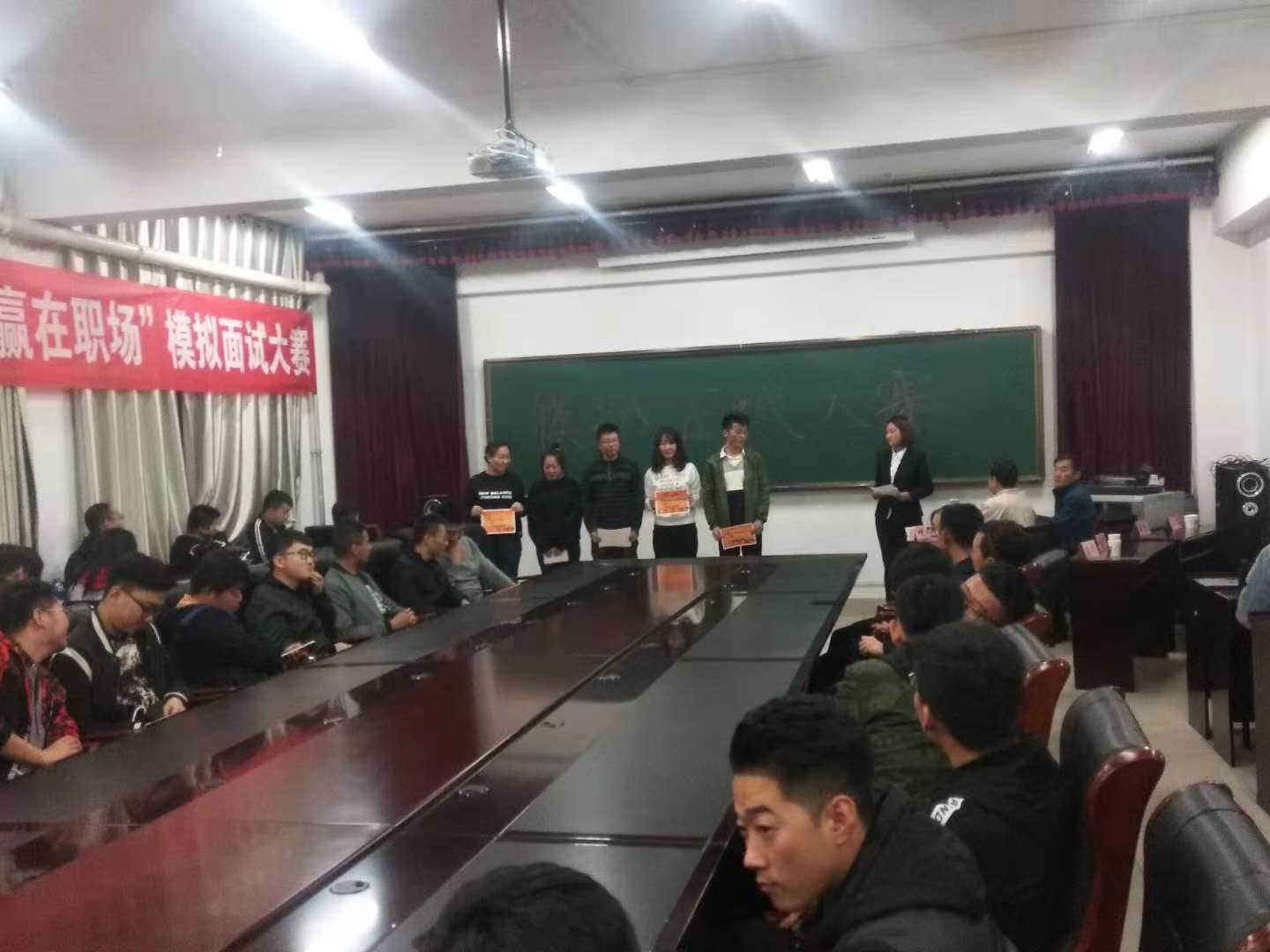 晚,伟德官方网站在工程技术楼A座二楼会议室举办了以“走进职场,纵横职场,赢在职场”为主题的简历与模拟面试大赛,担任本次大赛评委的有公司就业工作负责人照日格图,外语公司团委书记达布希拉图。