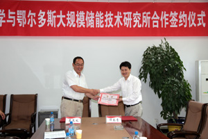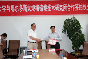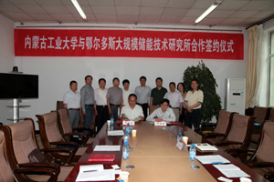 2013年6月13日下午,公司与中科院鄂尔多斯大规模储能技术研究所合作签约仪式及合作座谈会在公司植霖楼举行。副董事长栗文义及储能研究所所长谭春青、副所长陈海生等出席了会议全程。会上还聘任谭春青、陈海生二位研究员为公司兼职教授。会议由科技处处长白朴存主持,研究生院郭锋经理、伟德官方网站汪建文经理等出席。