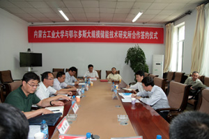 仪式上,栗董事长表示,中科院技术力量雄厚,在科研向生产力的转化方面是我学习的榜样,在今后合作过程过中希望能与储能研究所相互协作、互通有无,将公司在内蒙地区的办学优势与研究所的技术优势互补完善,真正实现“产学研”各方互利共赢的紧密合作。谭所长就该所目前鄂尔多斯大规模储能技术研究所研究项目及后期发展方向进行了详细介绍,畅谈了可能需要合作的几个方面。随后公司科技处、研究生院及能动、材料、机械、信息、化工公司等领导和老师,就目前公司科研方向与研究所项目的共性问题进行了深入交流与探讨,并在一些项目上如何协同创新初步达成了合作共识,为公司新型科研合作、人才培养机制奠定了良好的基础。