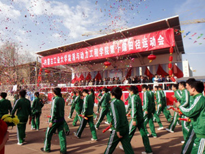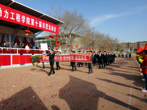 院团委书记马元波宣读精神文明评比条例,运动员代表能环09-2班范宇、裁判员代表热动09-5班陈新明分别代表全体运动员和裁判员宣誓。由121名来自不同专业和班级的员工组成的团体操表演方阵为本次运动会画上浓墨重彩的一笔,青春的队员、阳光的姿态、向上的风采、飞扬的情绪、有力的节奏、崭新的面貌,他们以整齐划一的动作,展示了他们的力量、精神和信念。