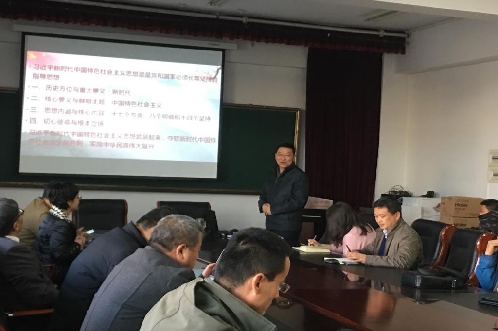 党委书记范永红结合前期的学习体会和调研成果,以“深学笃用——习近平新时代中国特色社会主义思想”为题,围绕习近平新时代中国特色社会主义思想的历史方位与重大意义、核心要义与鲜明主题、思想内涵与核心内容、初心使命与根本立场4个方面进行了讲授。他强调,习近平新时代中国特色社会主义思想是马克思主义中国化的最新成果,是党和人民实现中华民族伟大复兴中国梦的行动指南,必须长期坚持并不断发展。