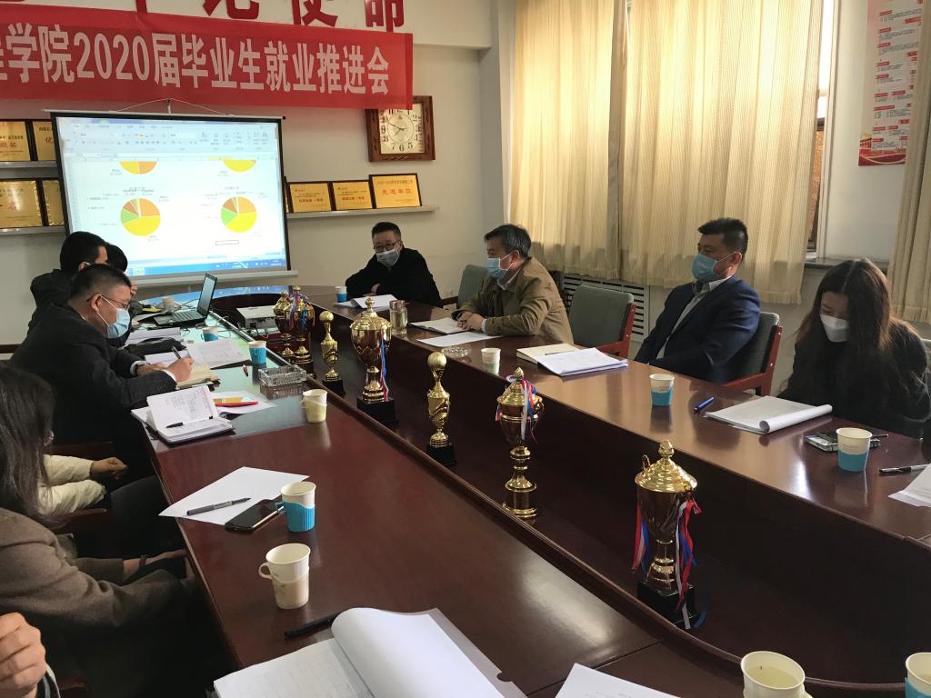 副经理李欣欣传达了内蒙古自治区就业工作视频会议精神。汇报了2019届毕业生就业情况,分析了当前新冠疫情下的严峻就业形势,并对推进2020届毕业生就业工作的措施进行部署。要求相关老师要扎实落实就业措施,分类施策做好就业工作,要对建档立卡毕业生、湖北籍毕业生、民族生等特殊群体要做好精准帮扶并建立就业台账。