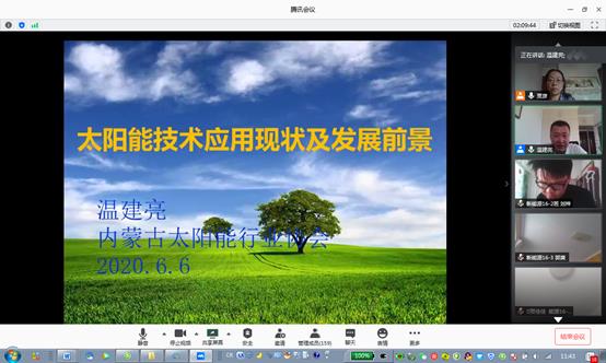 6月6日上午,新能源科学与工程系邀请内蒙古太阳能行业协会执行会长温建亮作了题为“太阳能技术现状及发展前景”讲座。讲座通过腾讯会议方式进行。