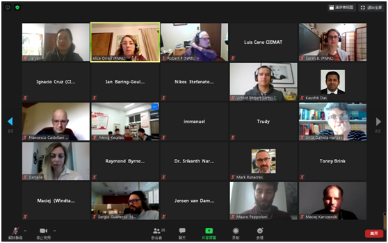 开幕式上,美国国家可再生能源实验室,丹麦科技大学,希腊可再生能源中心,西班牙能源研究所等共有20国家科研机构的26位分布式风电研究专家参加了此次视频会议。