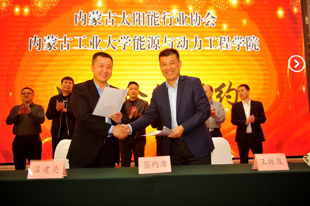 会上,王振友与内蒙古太阳能行业协会温建亮会长进行了战略性合作框架协议签约,为推动公司太阳能技术的进步和产学研合作具有重要意义,搭建了互惠互利的资源共享机制和合作平台。