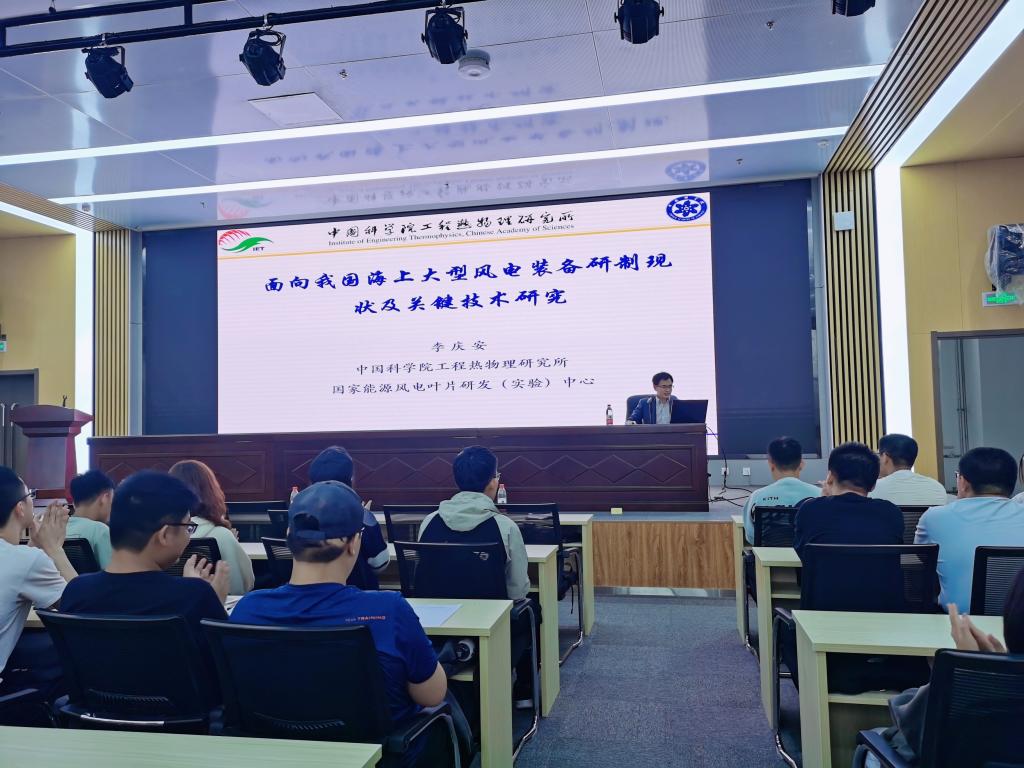 讲座中,李庆安研究员主要介绍了大型海上浮动式风电机组多场耦合及有效控制技术,以及风能/波浪能多能互补技术等。在场老师、同学认真聆听讲座,并在会后与李庆安研究员就“复杂海洋环境下深远海风能的高效利用”等问题进行了交流。