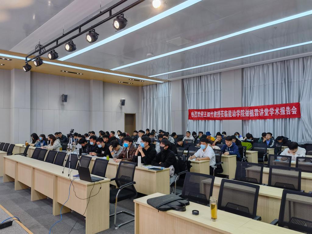 讲座中,王如竹教授以碳中和技术为切入点,详细阐述了碳中和背景下能效提升与节能、低品位热能回收利用、大规模可再生能源利用、碳捕集/碳汇。在场老师、同学认真聆听讲座,并在会后与王如竹教授就“内蒙地区储能利用”等问题进行了深入探讨。