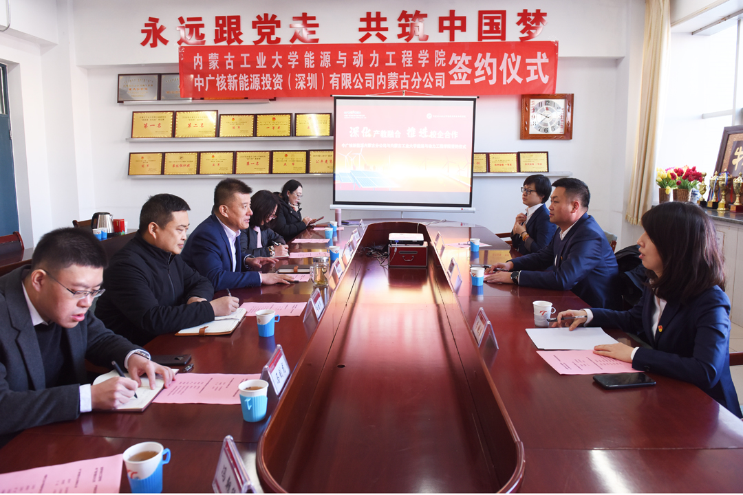 12月17日,伟德官方网站与中广核新能源投资(深圳)有限公司内蒙古分公司签订战略合作协议仪式在工程技术楼A座211举行。中广核新能源投资(深圳)有限公司内蒙古分公司总经理助理苗宝平一行3人,公司党委书记王振友、副经理杨晓宏、副经理王清华、公司相关系主任、学科团队骨干出席会议。