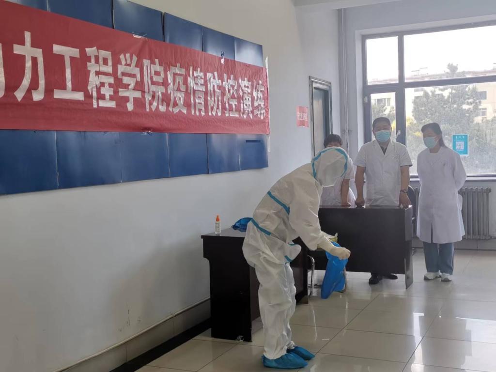 本次演练严格按照公司疫情防控工作的有关要求,结合公司特点有针对性的开展疫情防控应急演练。演练开始前,校医院董卫红、高正强、贾爱萍三位工作人员现场演示了防护服的正确穿脱方式,随后依次进行了公司七个场景的演练,分别是员工在返校途中、员工返校入校时、员工在宿舍晨午检、员工在行政区域办理相关业务、教师在教室上课、研究生工作室、实验室出现异常情况的应急处置。