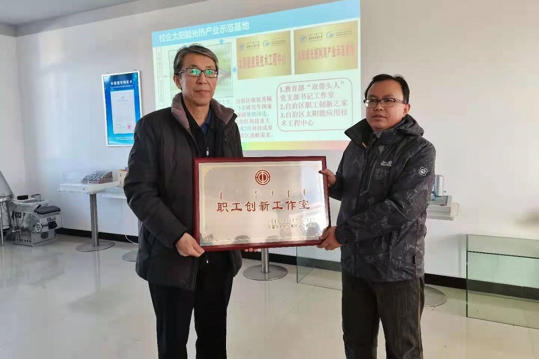 公司太阳能光热应用技术工作室负责人常泽辉教授详细介绍了工作室的创建历程、人员结构、设施设备、规章制度、创新成果及推广应用等情况。经过实地考核,太阳能光热应用技术工作室被授予内蒙古自治区教科文卫体系统“职工创新工作室”称号。
