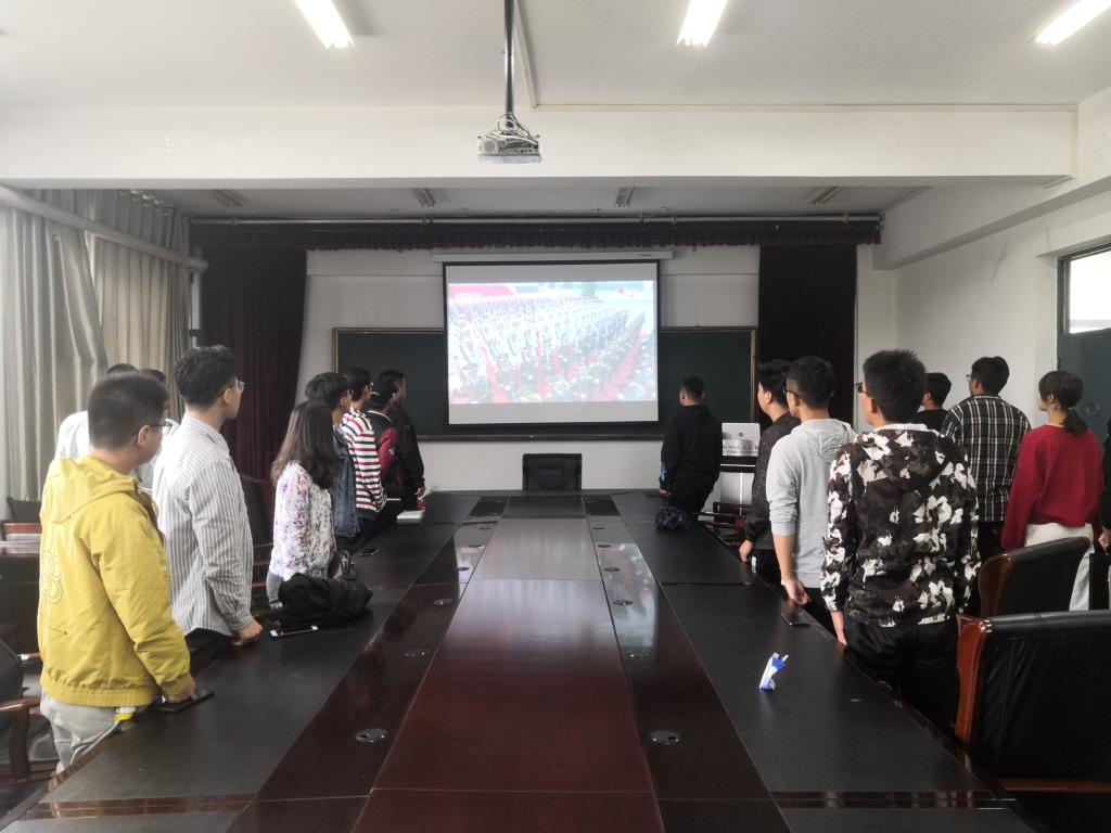 10月1日上午,伟德官方网站组织员工在工程技术楼206观看庆祝中华人民共和国成立70周年阅兵仪式直播。